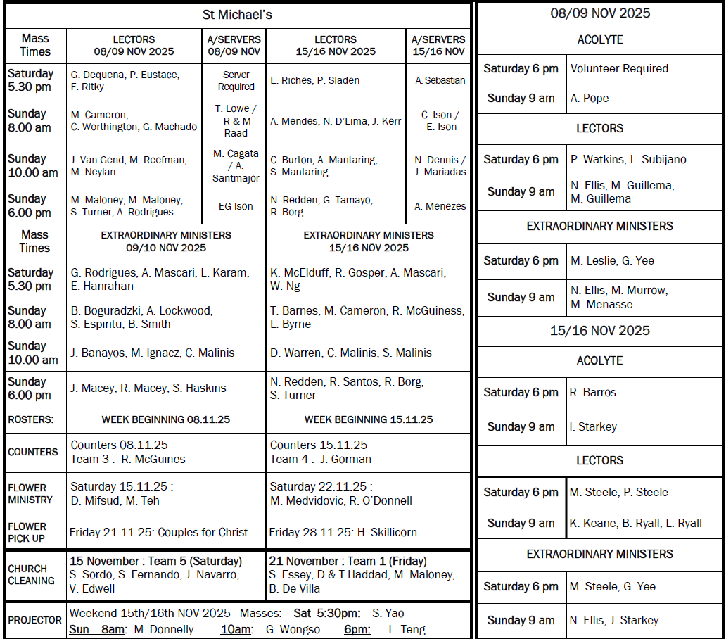 All are welcome to stay for morning tea after 10am mass next SUNDAY 9th November.